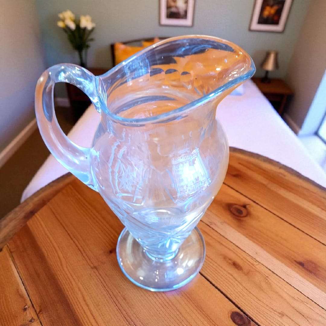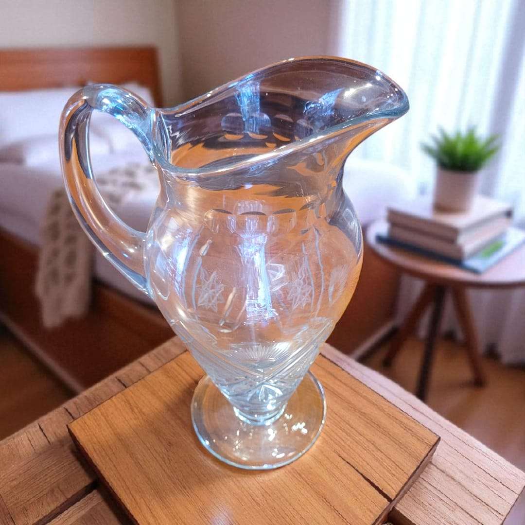 Jarra de cristal antigua grabada a mano – Elegancia y arte
