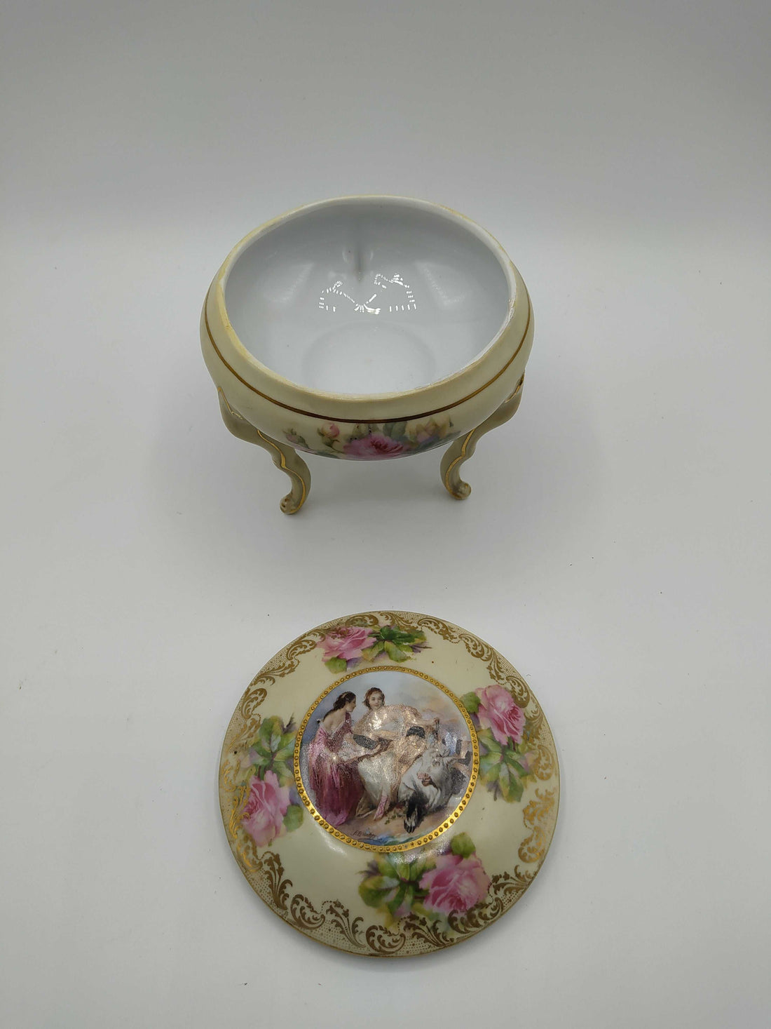 Polvera de Porcelana Francesa Pintada a Mano | Elegancia Antigüa