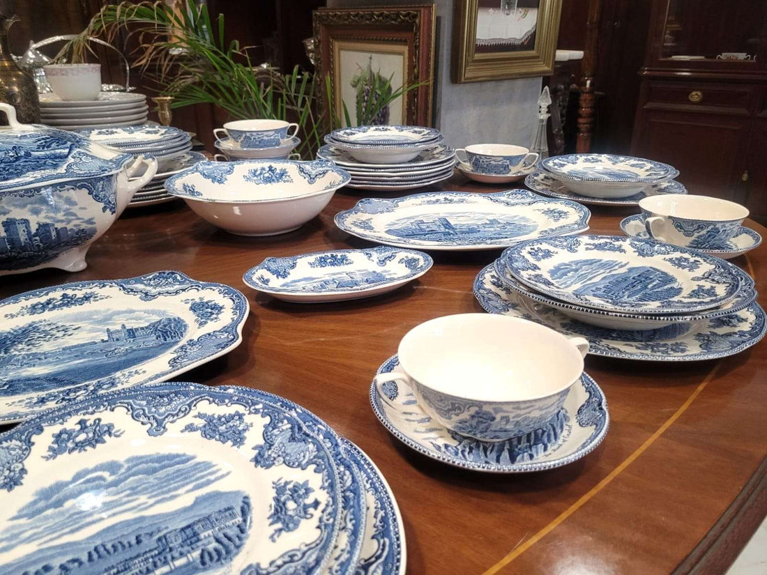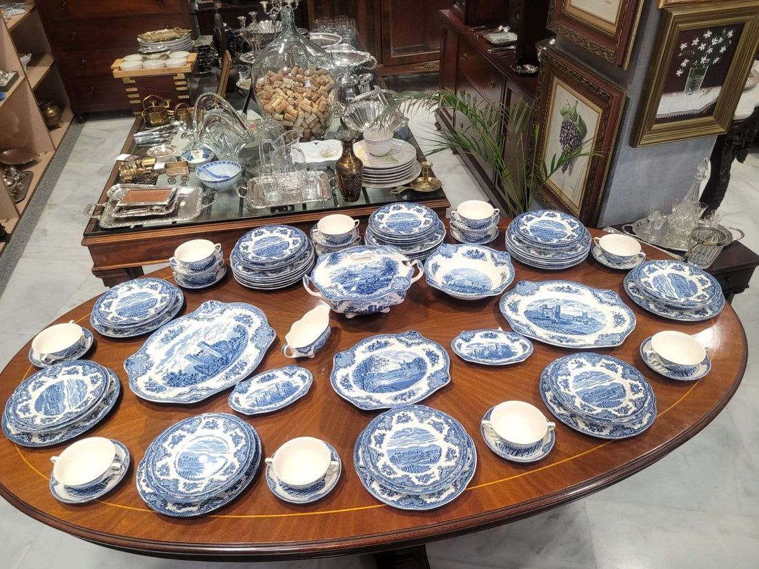Tibor de porcelana pintado a mano con cacería inglesa, exclusivo