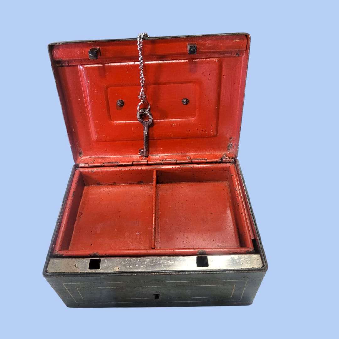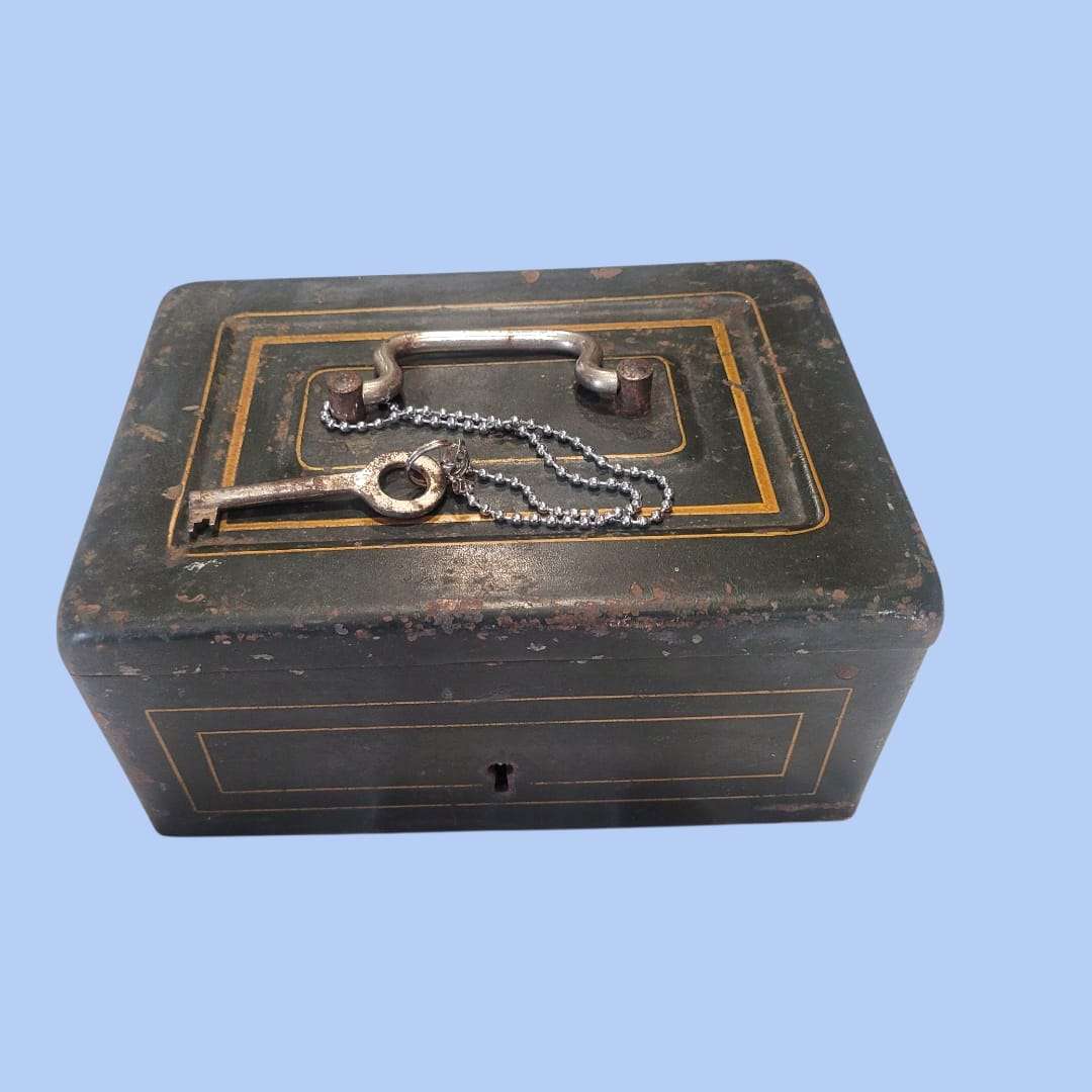 Embudo de farmacia antiguo – pieza de chapa con llave