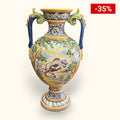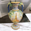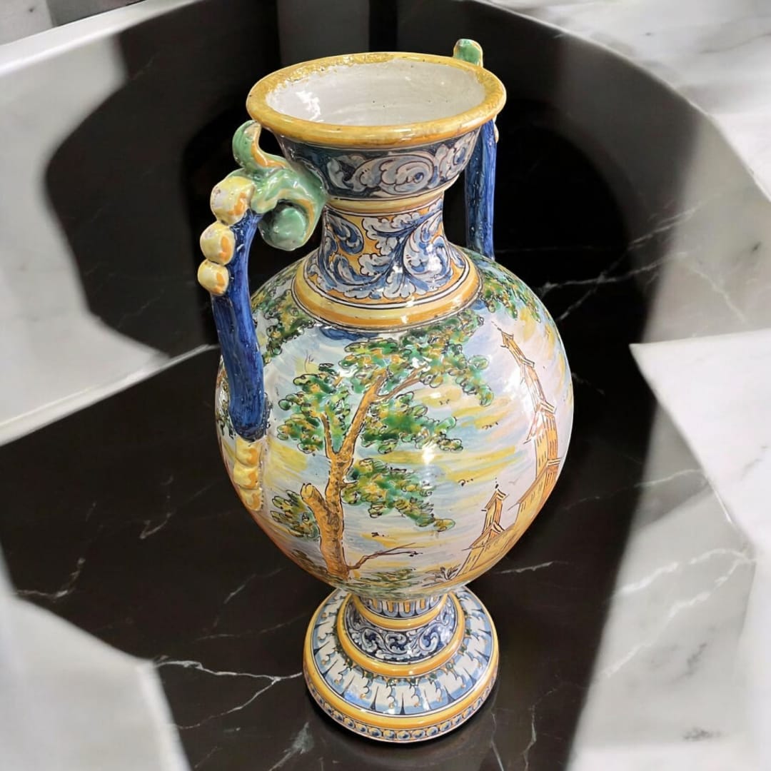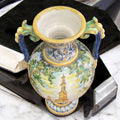 Ánfora de Cerámica de Talavera Esmaltada con Escenas Paisajísticas
