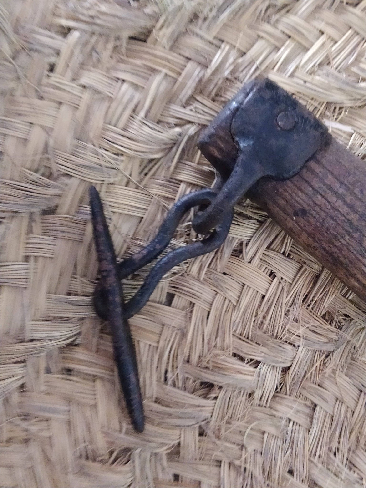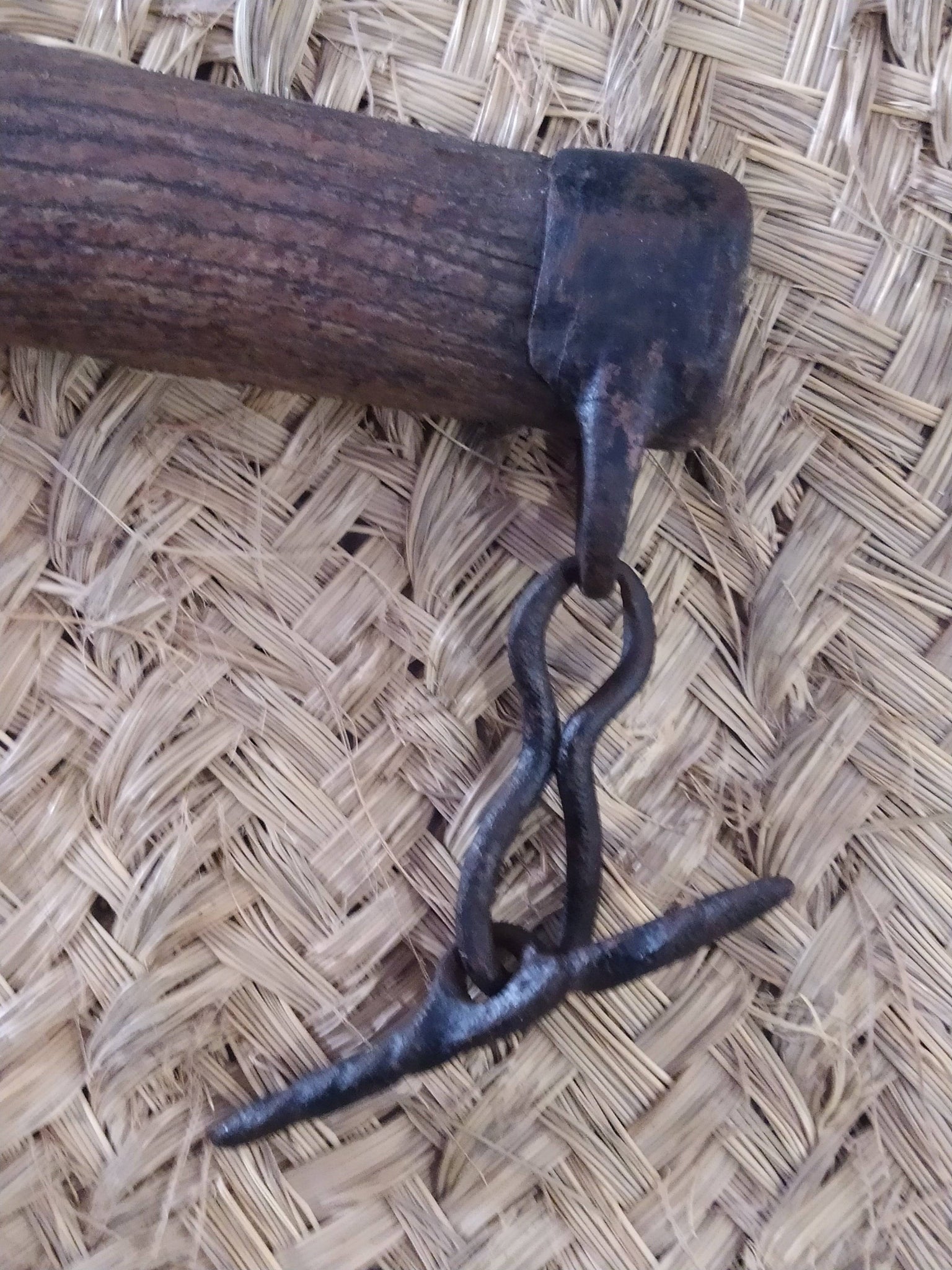 Detalle del gancho central metálico del balancín - Tiro Animal Arado, pieza funcional y decorativa para uso con mulas y caballos.