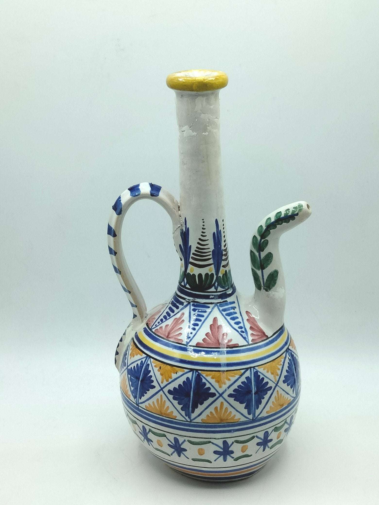 Ideal para decorar cocinas rústicas, patios con encanto o colecciones de alfarería antigua, este botijo de cerámica es también una declaración de amor por lo tradicional. Su condición artesanal y el estado de conservación lo convierten en una pieza de edición limitada, con historia y alma.