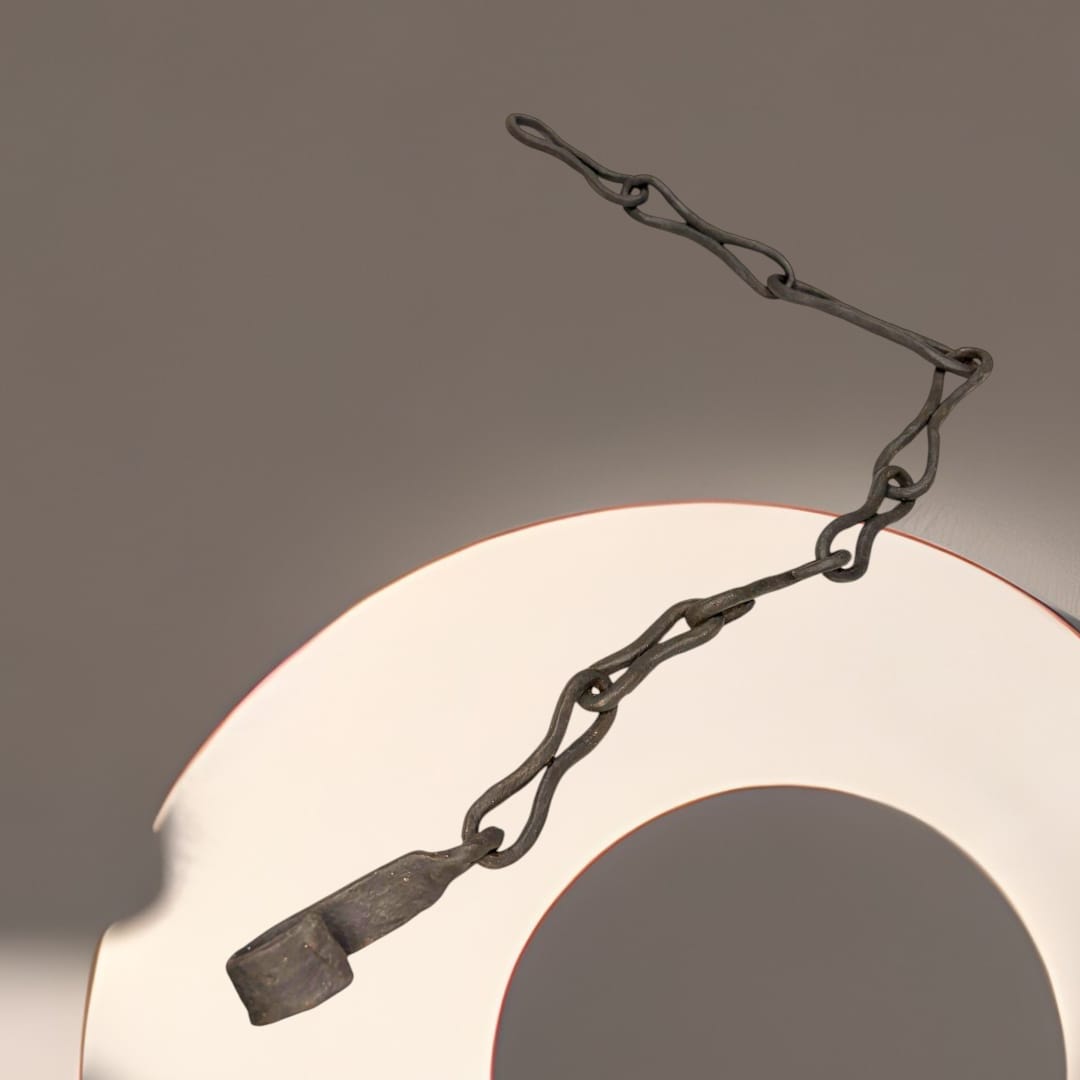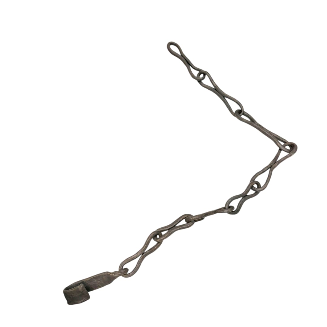 Esta cadena de forja antigua no es una reproducción: es un objeto auténtico, trabajado artesanalmente en hierro forjado, con señales visibles del paso del tiempo que refuerzan su carácter histórico y decorativo.