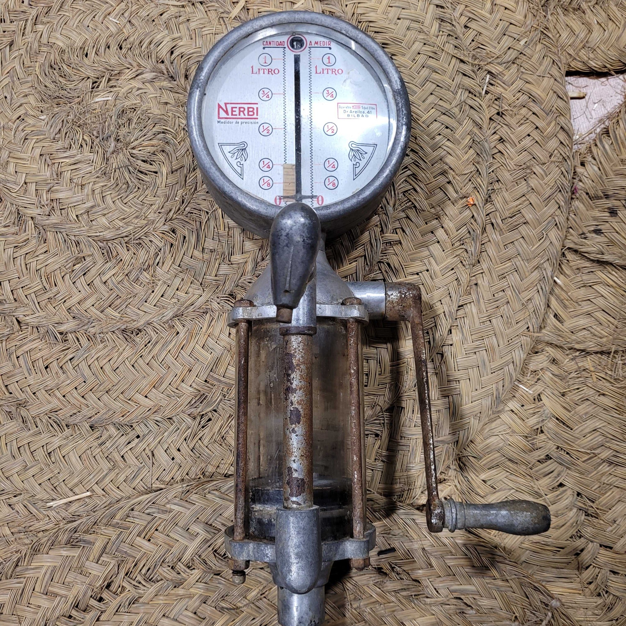 Este dispensador de aceite antiguo de los años 40-50 es una joya mecánica y visual del comercio tradicional español. Con 140 cm de altura, es una pieza robusta y auténtica, conservada en perfectas condiciones y lista para destacar en cualquier ambiente vintage o industrial.