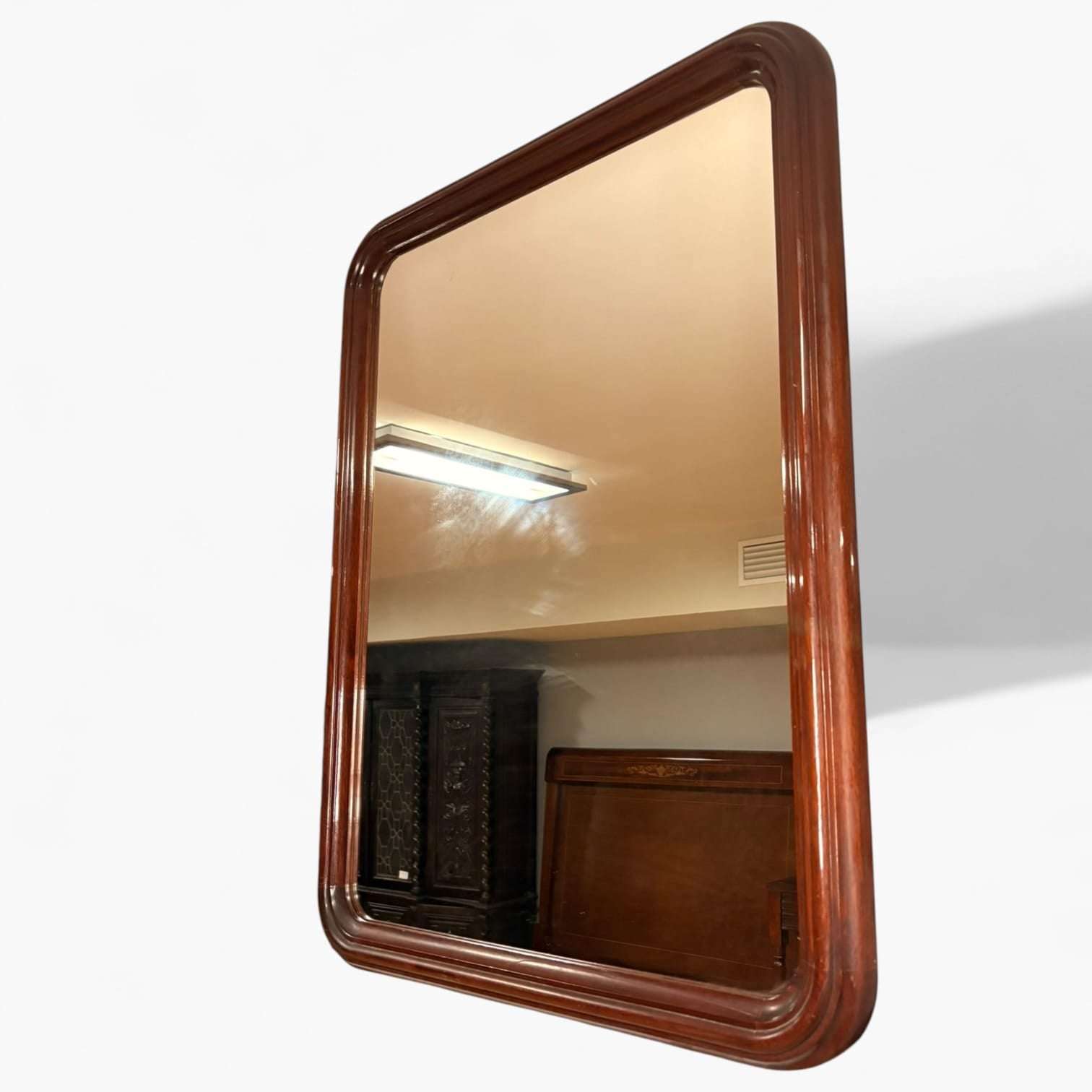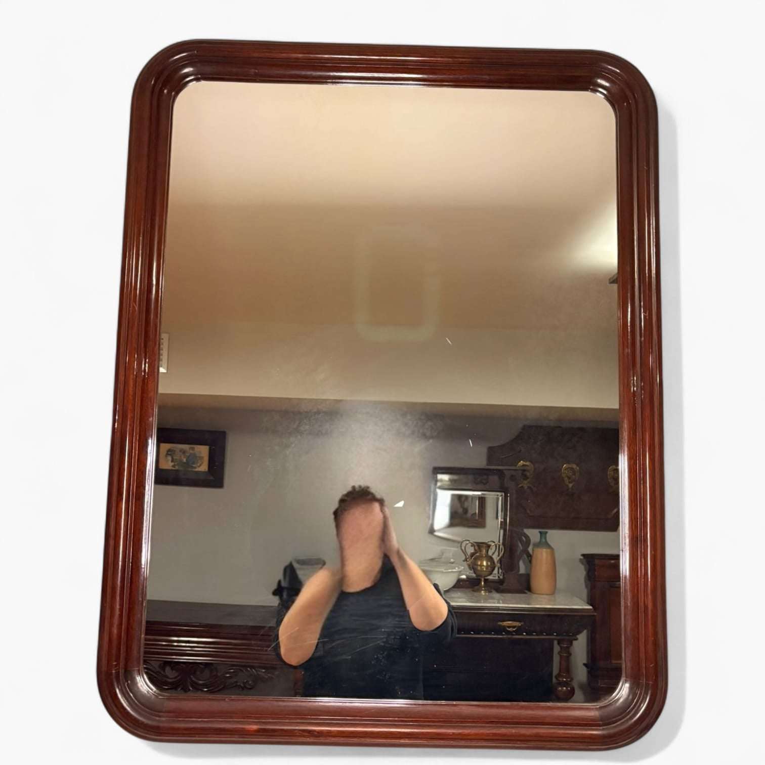 H1: Espejo de caoba rectangular con marco moldurado