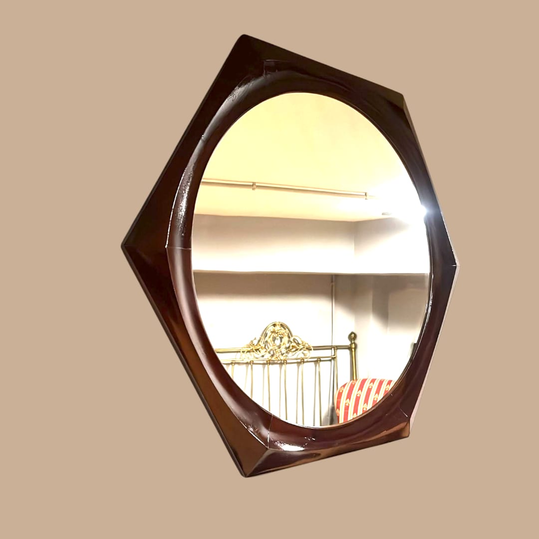 Espejo hexagonal de caoba – Diseño exclusivo y elegante