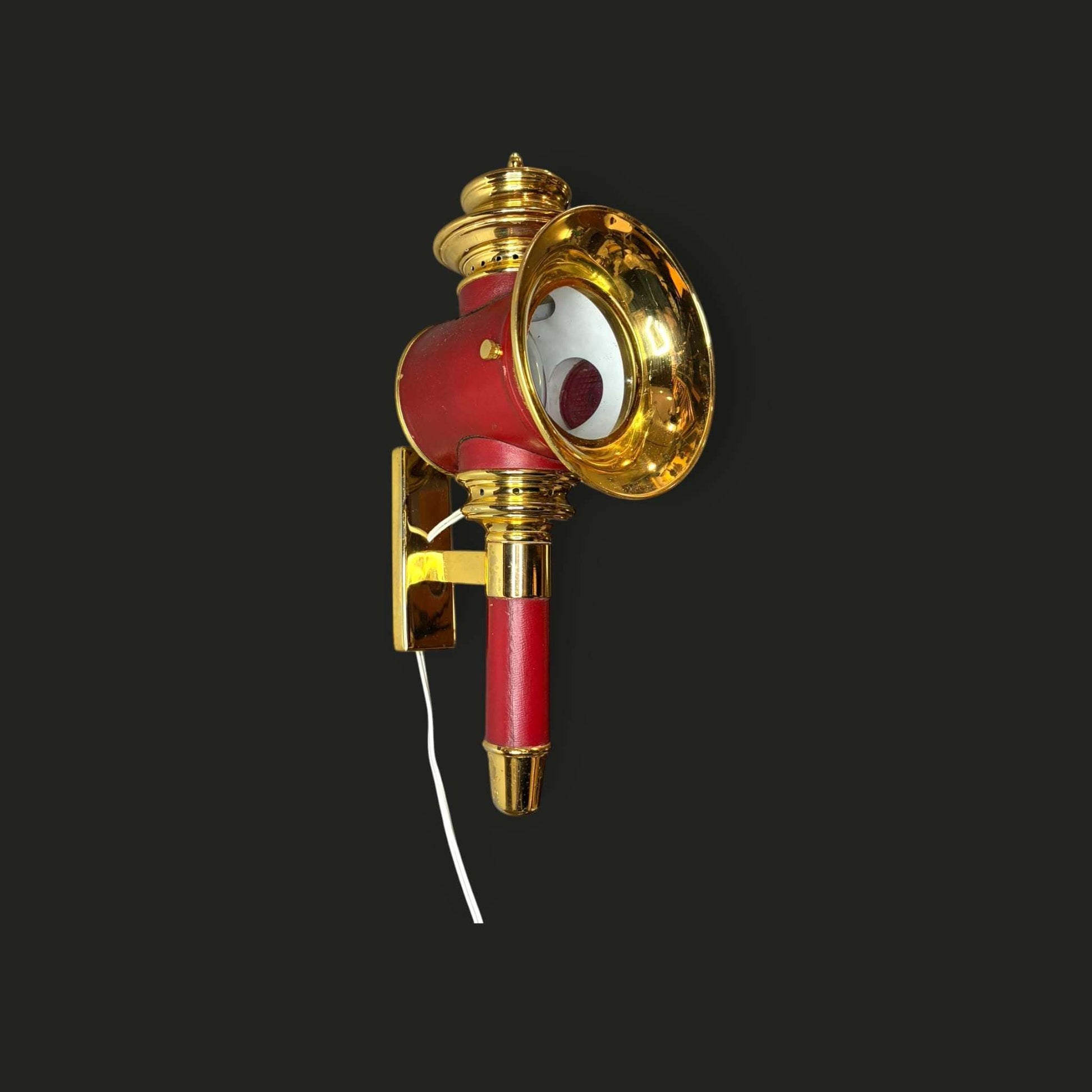 Óptica lateral roja tipo reflector (detalle icónico de carruaje) que eleva su estética a pieza de colección decorativa.