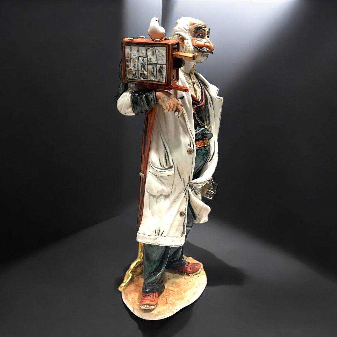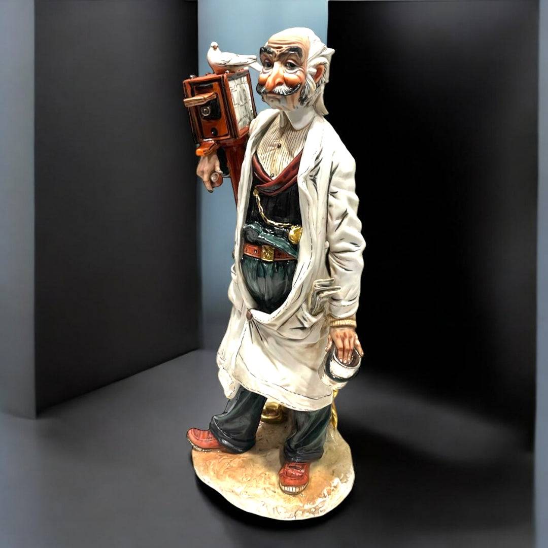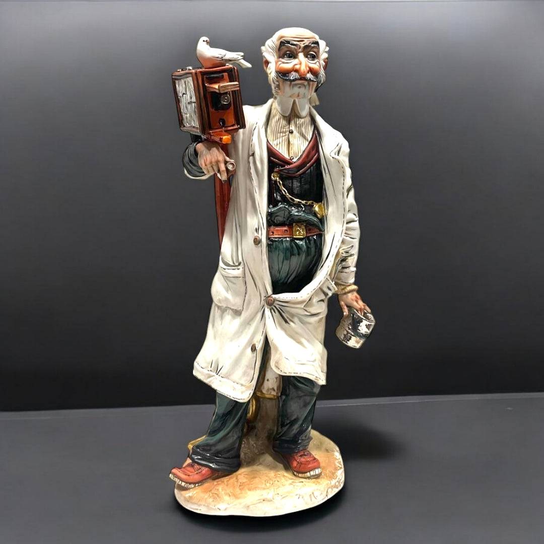 Esta magnífica figura de porcelana, creada por López Moreno, representa a un fotógrafo en estilo caricatura con detalles sorprendentes que capturan la esencia de la profesión. Con su diseño único, esta pieza combina humor y arte, mostrando una figura encantadora y detallada, perfecta para cualquier colección. Fabricada en España por Porcelanas Artísticas Españolas, destaca por su expresión facial animada y el acabado impecable en cada rincón de la figura. Su estilo vintage y su excelente estado de conservación hacen que sea una joya para los amantes de la porcelana de alta calidad y los coleccionistas de arte. Una pieza icónica que refleja el gran talento y creatividad del artista López Moreno.