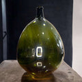 Cristal soplado artesanal en tono verde oliva degradado, con variaciones naturales propias del proceso manual.