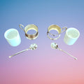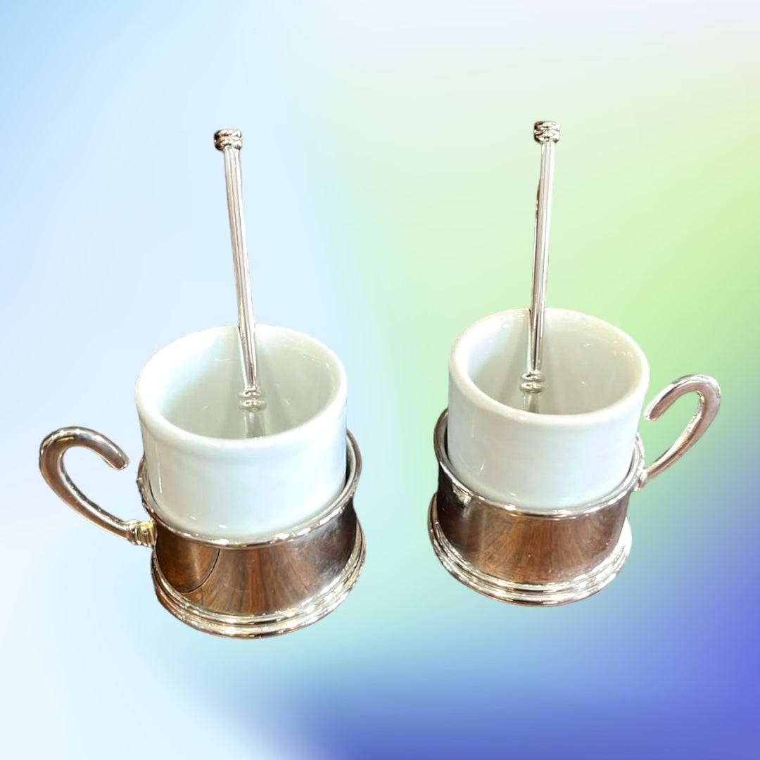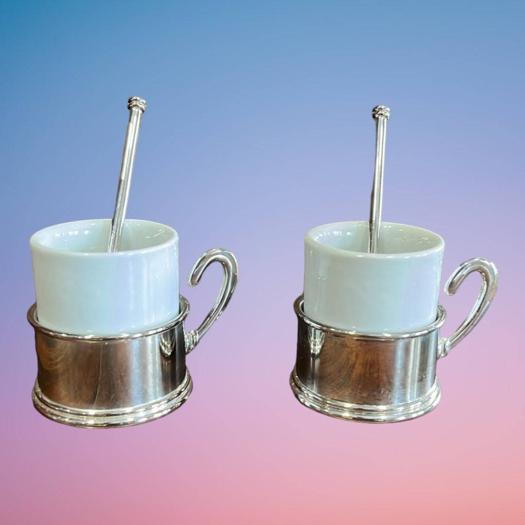 Juego de tazas de té Terno Siglo XX en acero y porcelana.