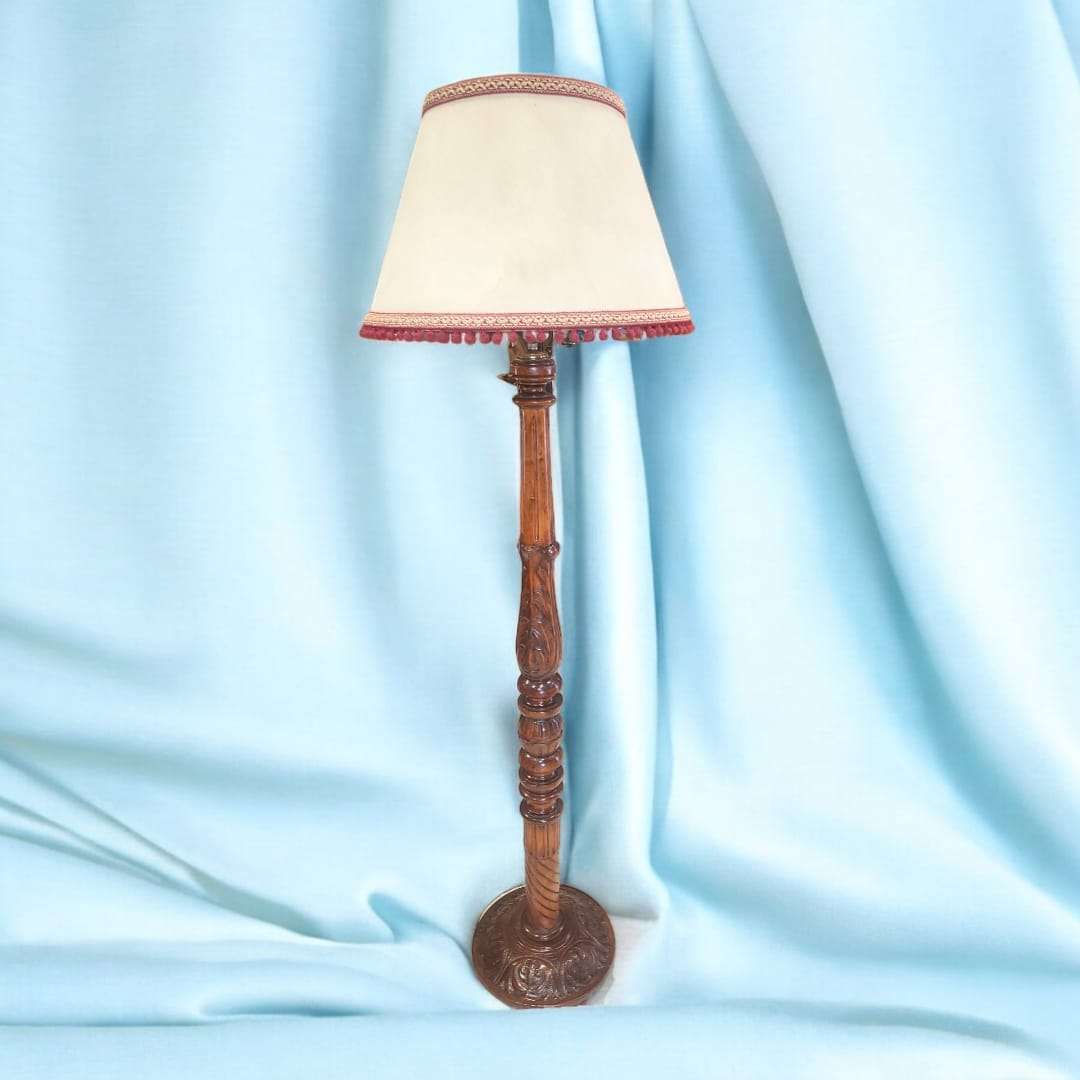 Lámpara de Pie de Madera Tallada – Elegancia y Estilo Rústico