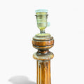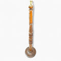 Esta lámpara de pie de madera tallada es una obra artesanal única, trabajada cuidadosamente en madera maciza. Su columna muestra tallados geométricos y motivos vegetales que aportan carácter y un estilo atemporal. La base circular, ricamente decorada, le otorga firmeza y realce ornamental, convirtiéndola en una pieza de coleccionismo y uso práctico.