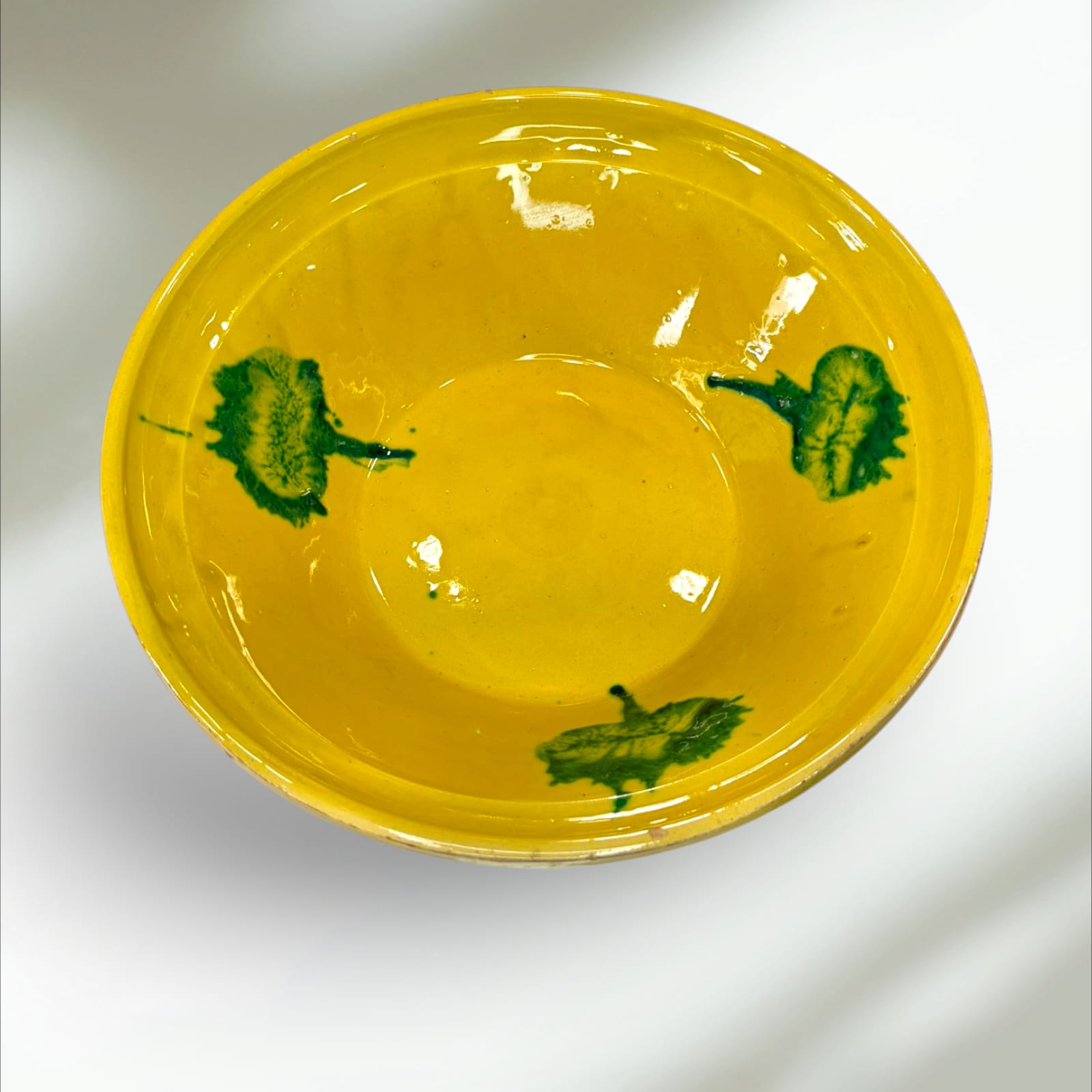 El esmalte brillante, la viveza del color amarillo y los detalles verdes en contraste lo diferencian de modelos más neutros o comunes. É uma peça única, limitada e cheia de presença visual, ideal para quienes valoran la cerámica tradicional, la decoración con alma y los objetos que conservan memoria artesanal.