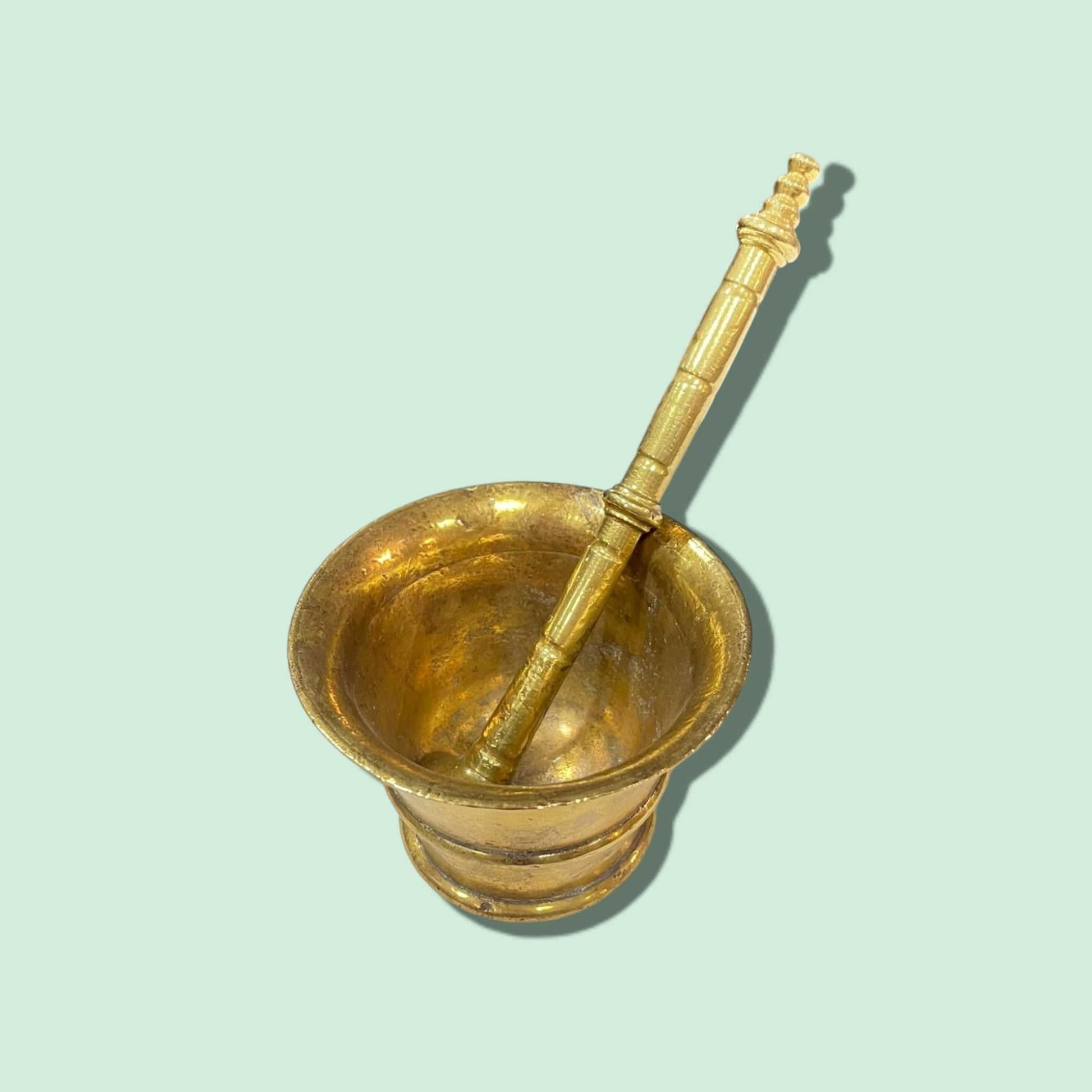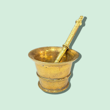 Mortero antiguo de bronce con diseño clásico y pestillo