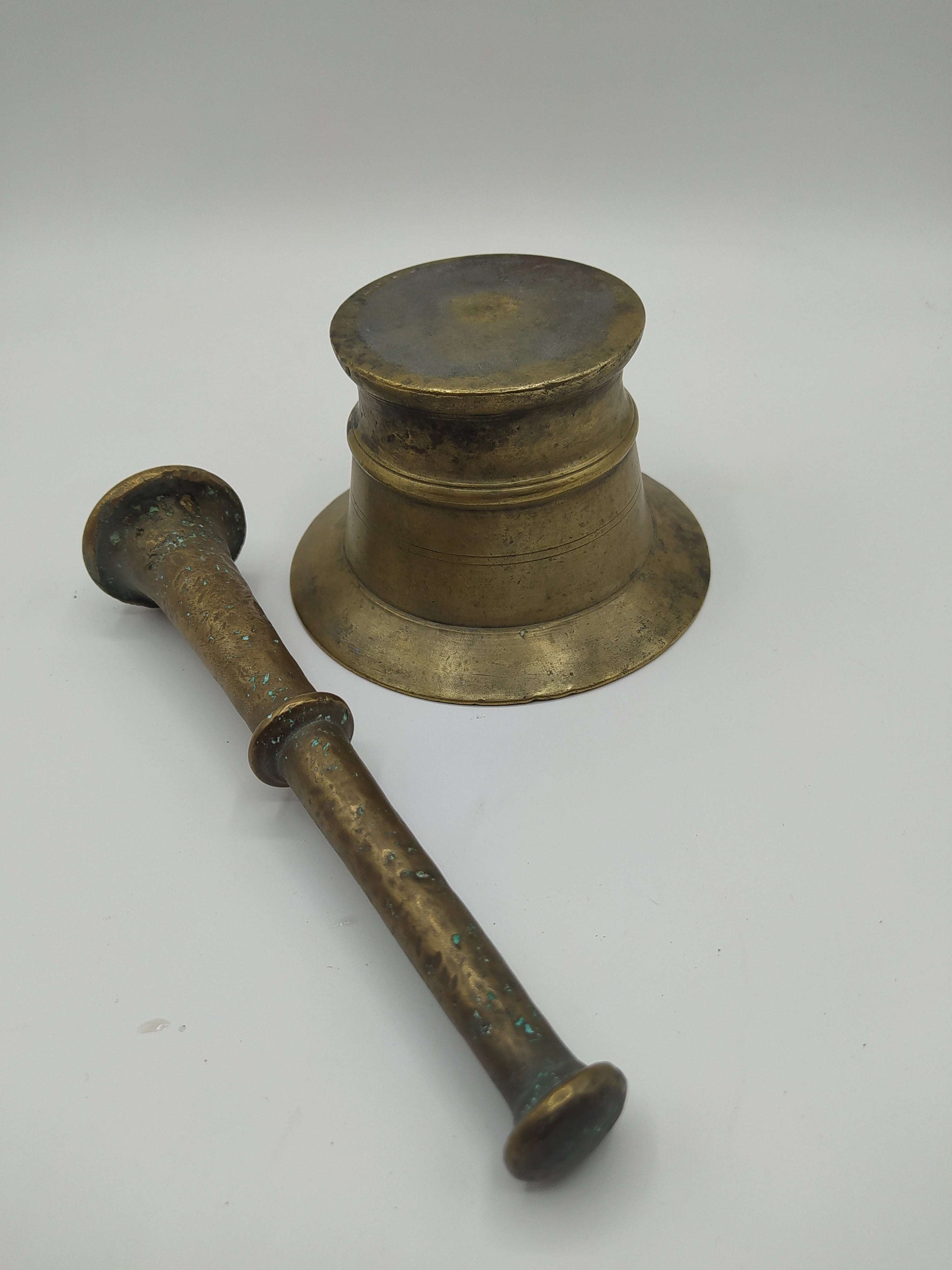 Este antiguo mortero en bronce es un testimonio de la elegancia y la funcionalidad de otros tiempos. Ideal para quienes buscan añadir un elemento de distinción a su hogar.