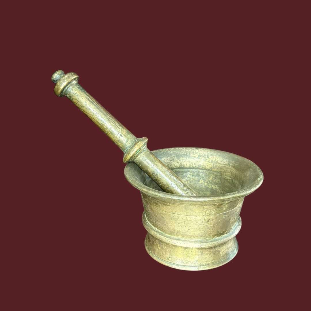 El Mortero de bronce es una herramienta esencial para triturar especias, semillas, hierbas aromáticas, ajo o preparar mezclas culinarias con control total. Su estructura sólida permite extraer aromas y aceites naturales de los ingredientes, intensificando sabor y textura.