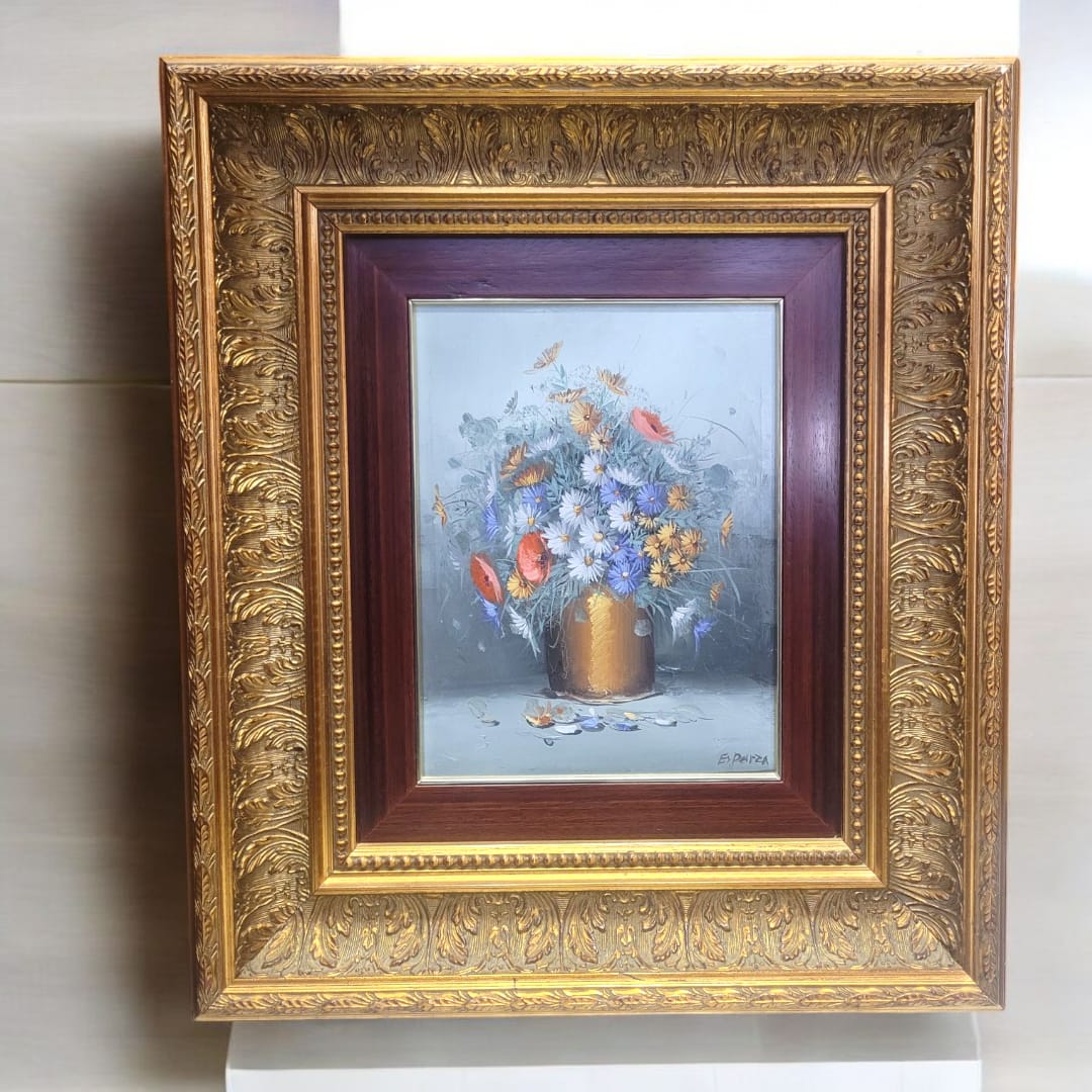 Óleo Sobre Lienzo Floral con Marco Dorado - Arte Decorativo