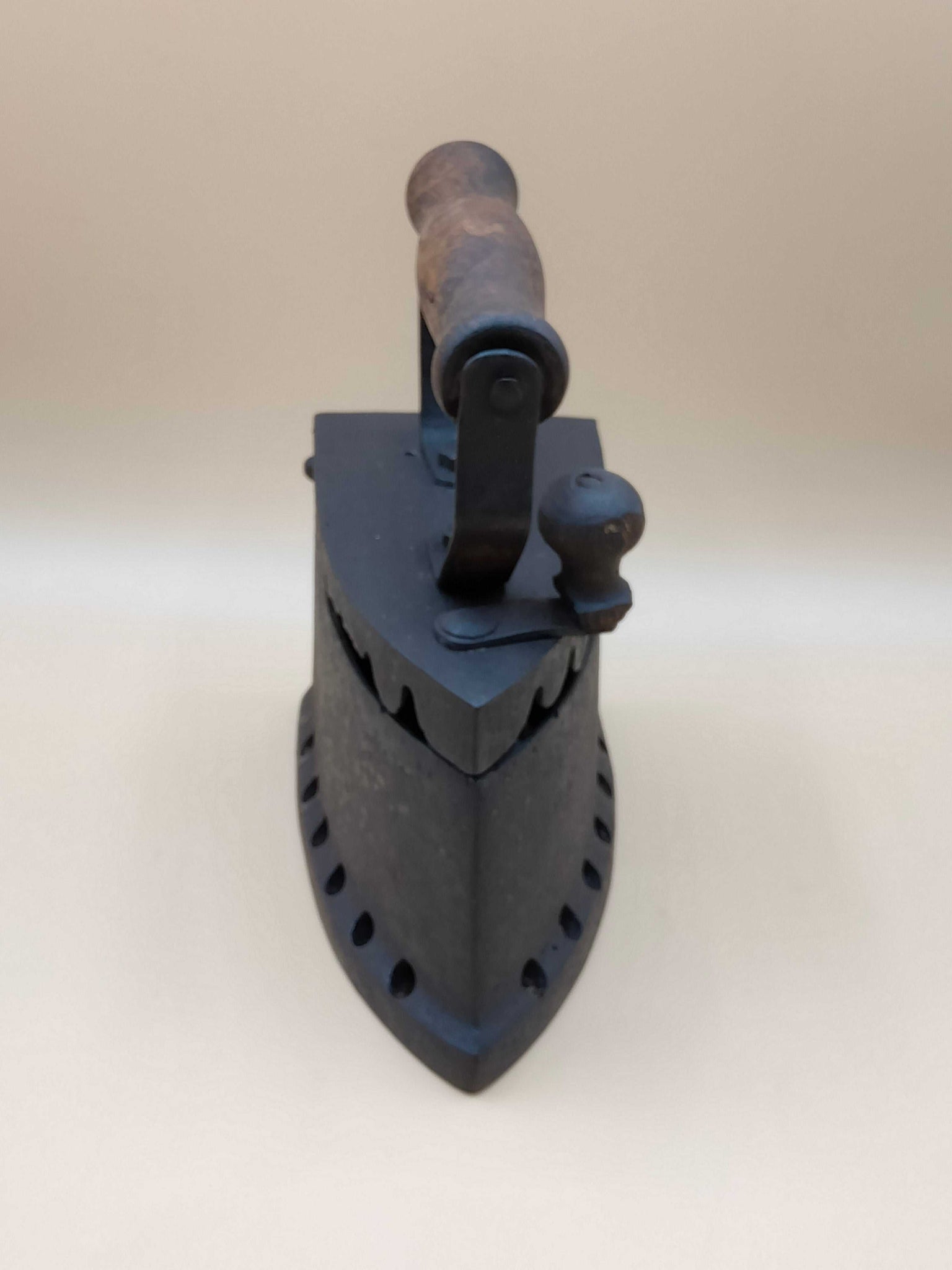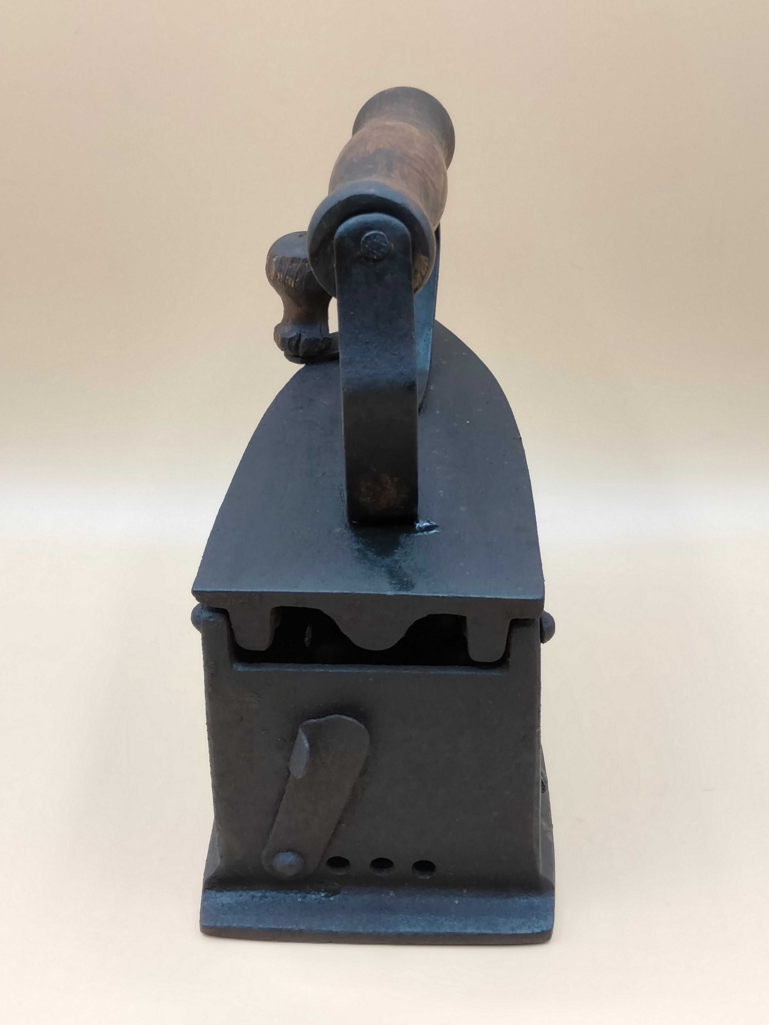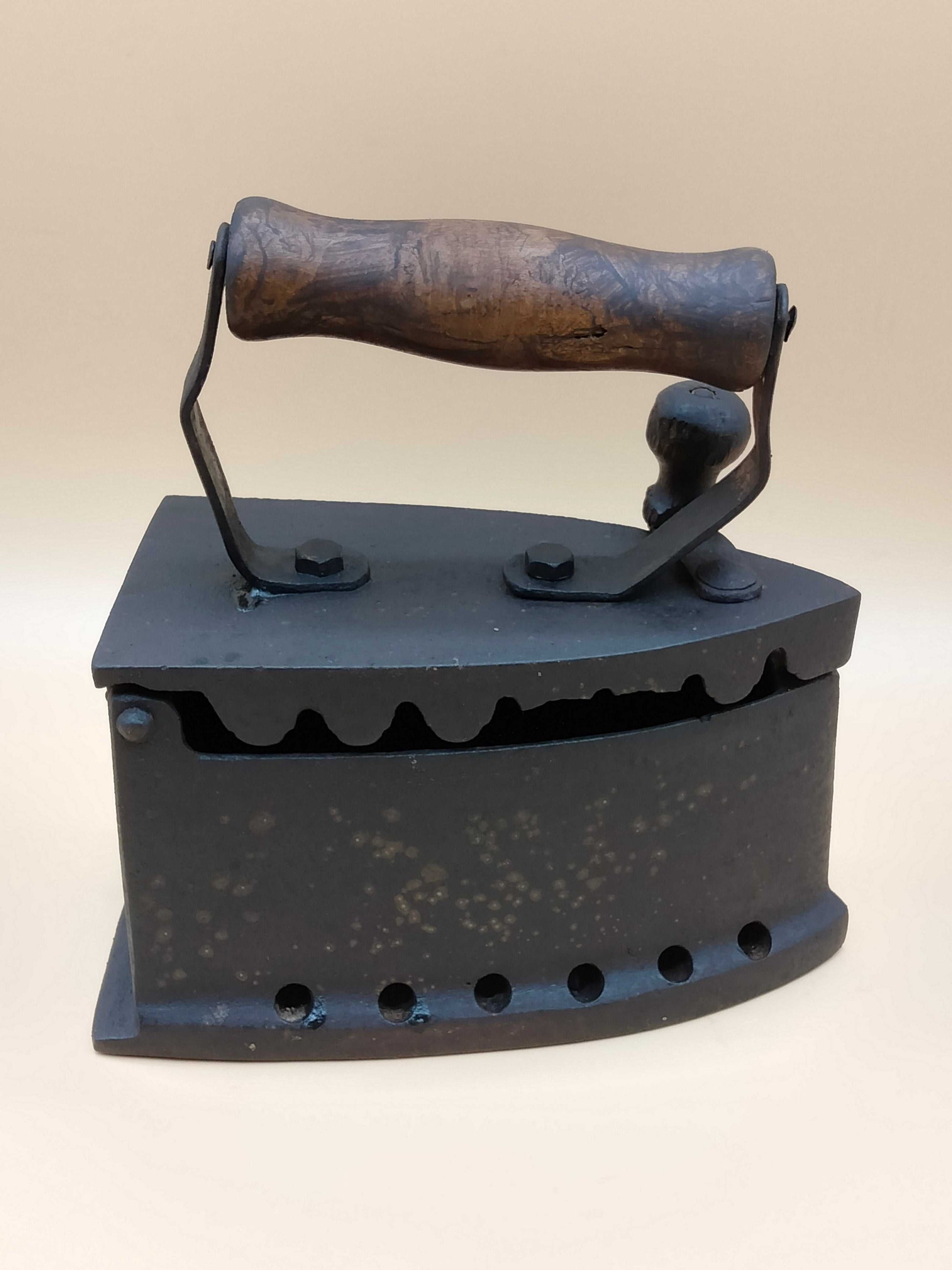 Esta plancha de carbón en fundición representa una época donde el hierro y el fuego se unían para crear herramientas duraderas, funcionales y bellas. Se utilizaba colocando carbón encendido en su interior, lo que generaba calor constante, ideal para alisar telas en tiempos sin electricidad. Hoy, esta pieza se presenta como un elemento decorativo de gran impacto visual y valor histórico.