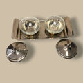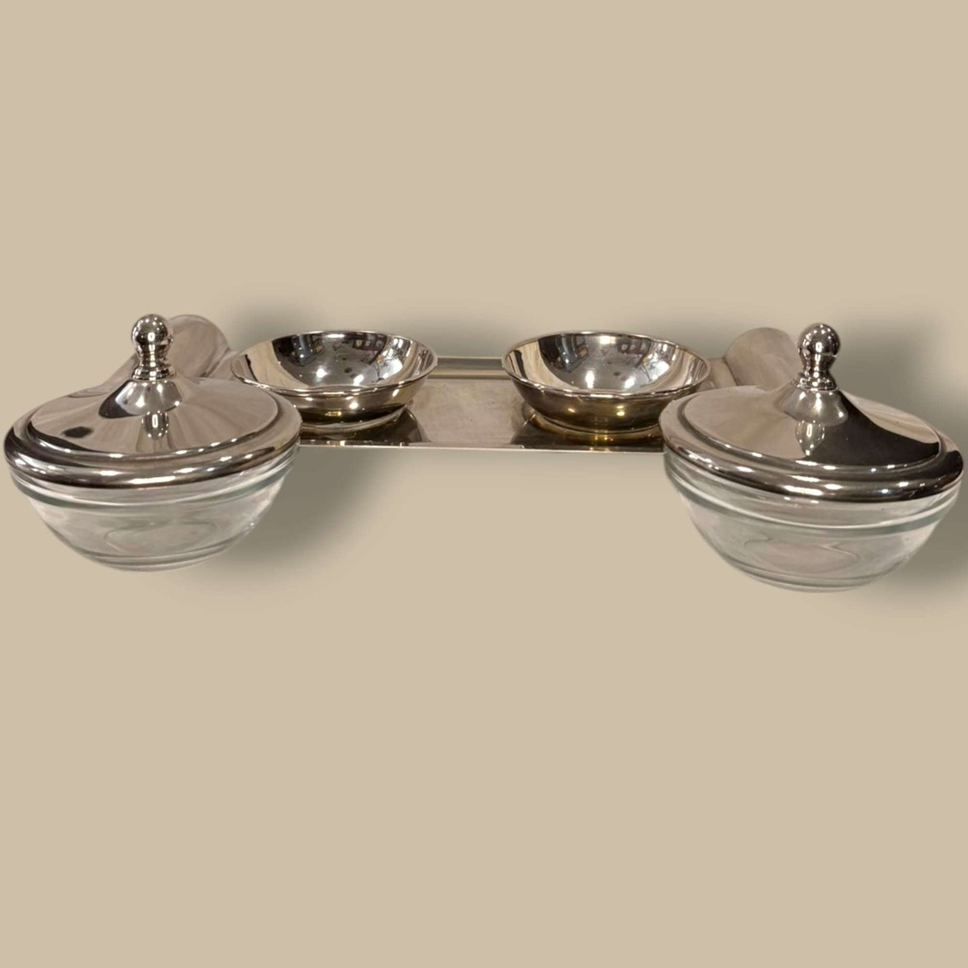 Set de servicio con salseras cristal y bandeja plateada