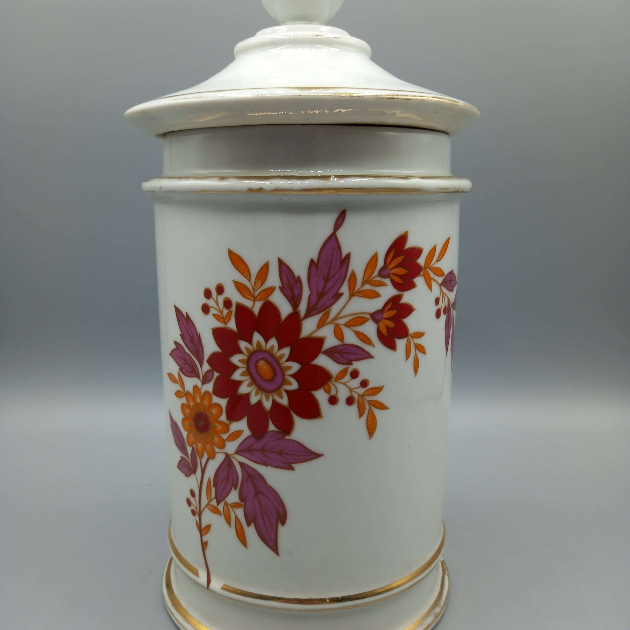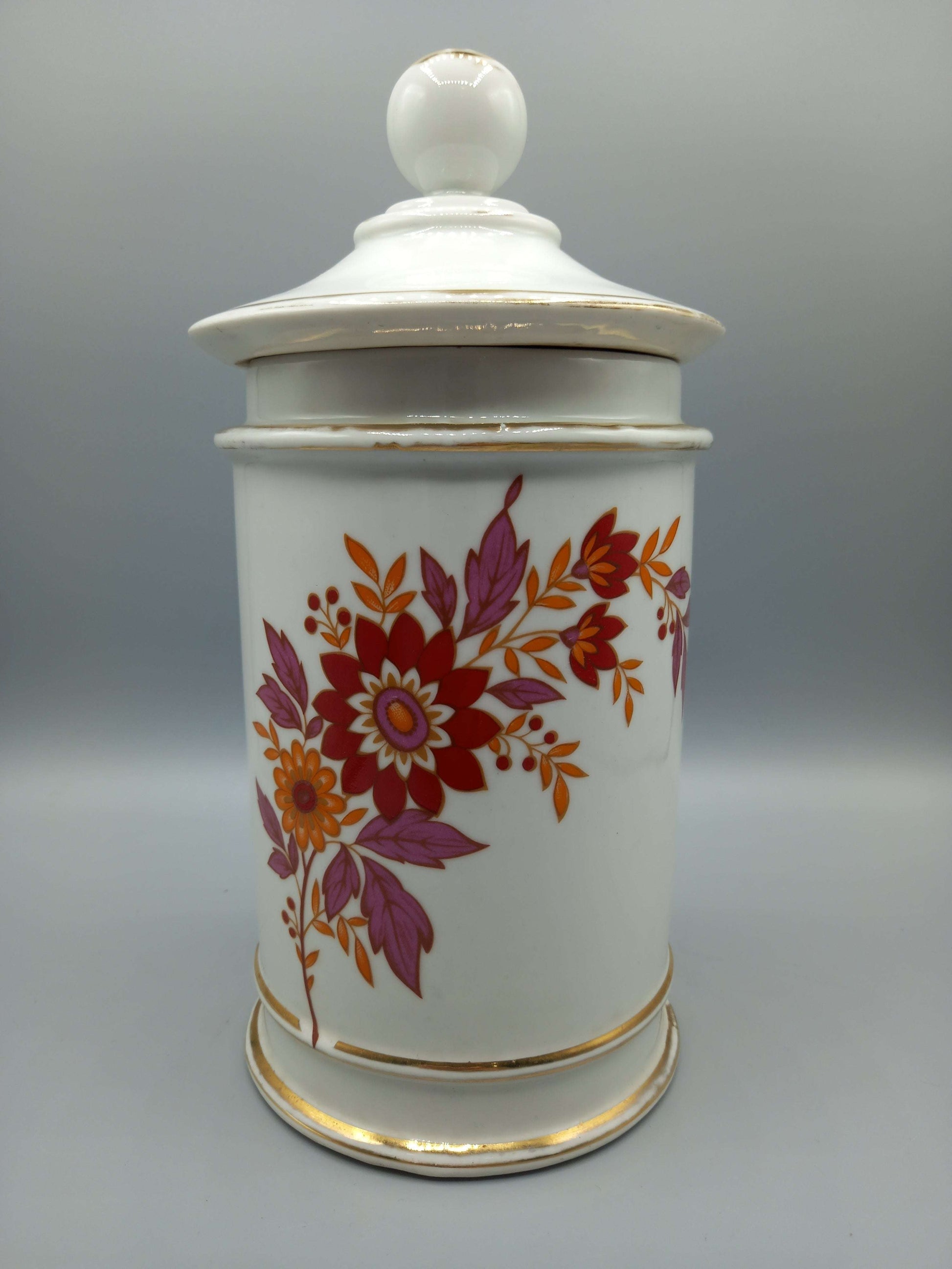 Tarro-Albarelo de Farmacia Antiguo en Porcelana con Decoración Floral