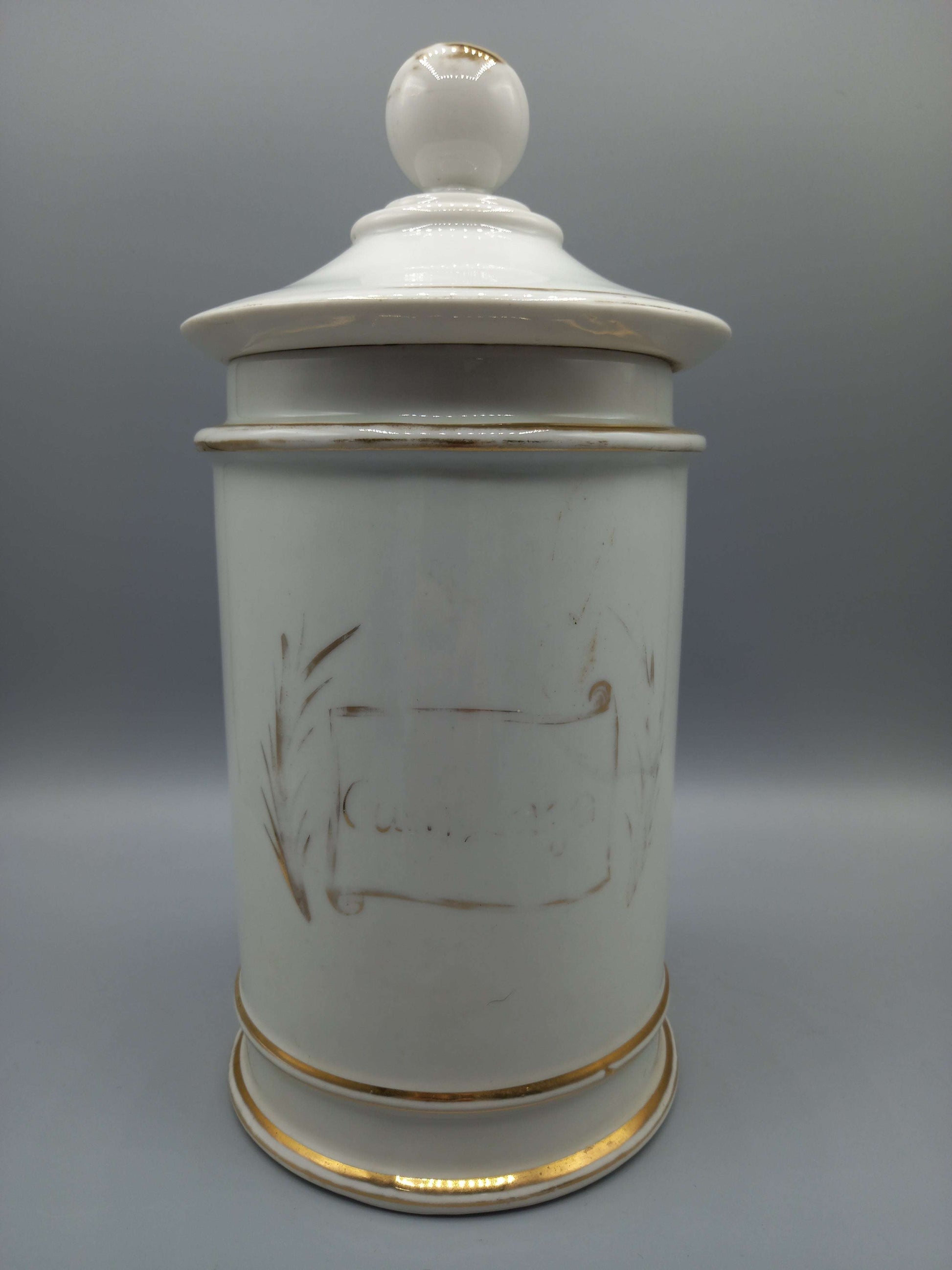 Este precioso tarro-albarelo de farmacia antiguo es una auténtica joya de la porcelana clásica. Con una delicada decoración floral pintada a mano, es ideal para coleccionistas de antigüedades o para dar un toque único y elegante a cualquier espacio. Su diseño tradicional, típico de los albarelos usados en boticas antiguas, lo convierte en una pieza histórica de gran valor. Además de su belleza decorativa, su excelente estado de conservación lo hace perfecto para embellecer cualquier ambiente con un aire vintage y refinado.