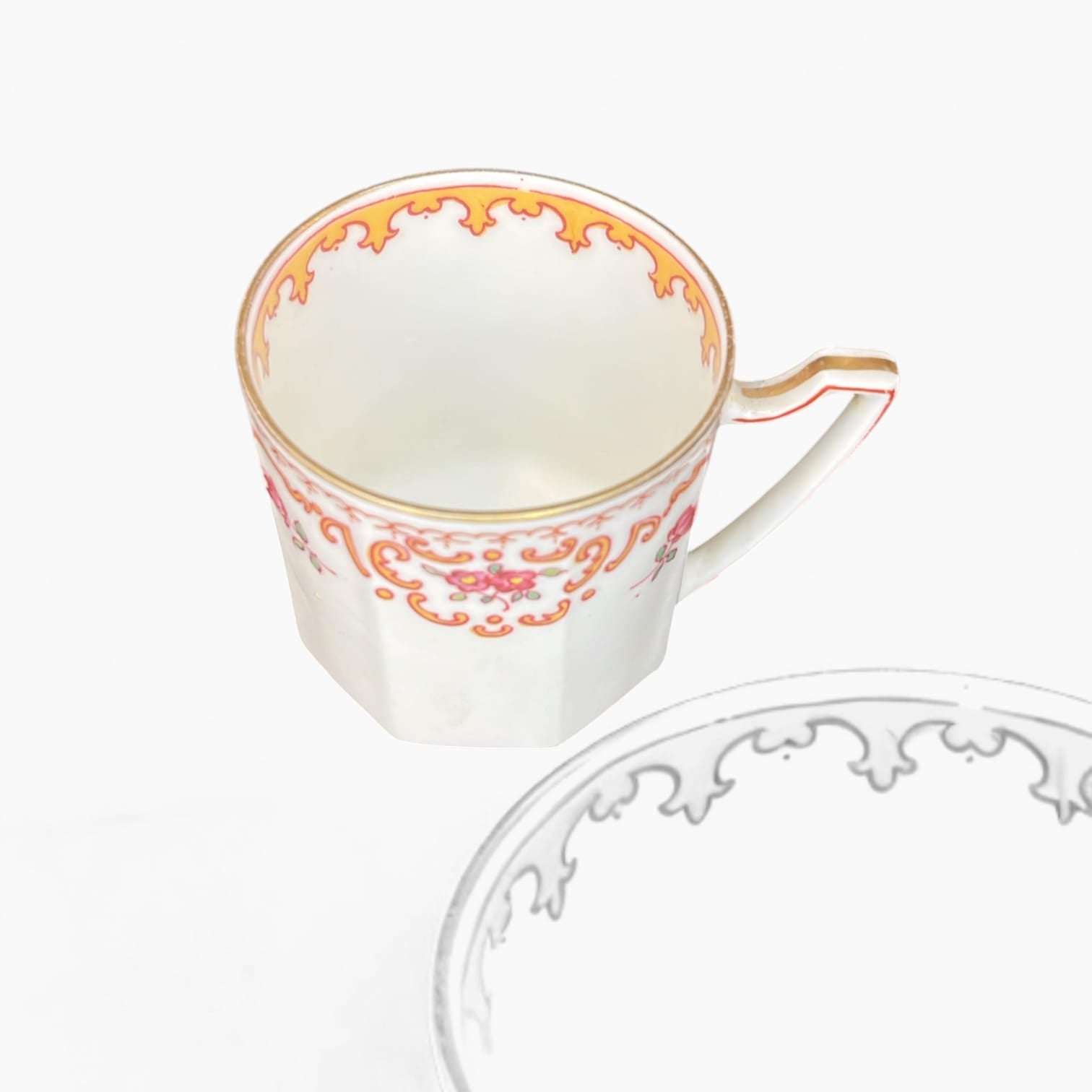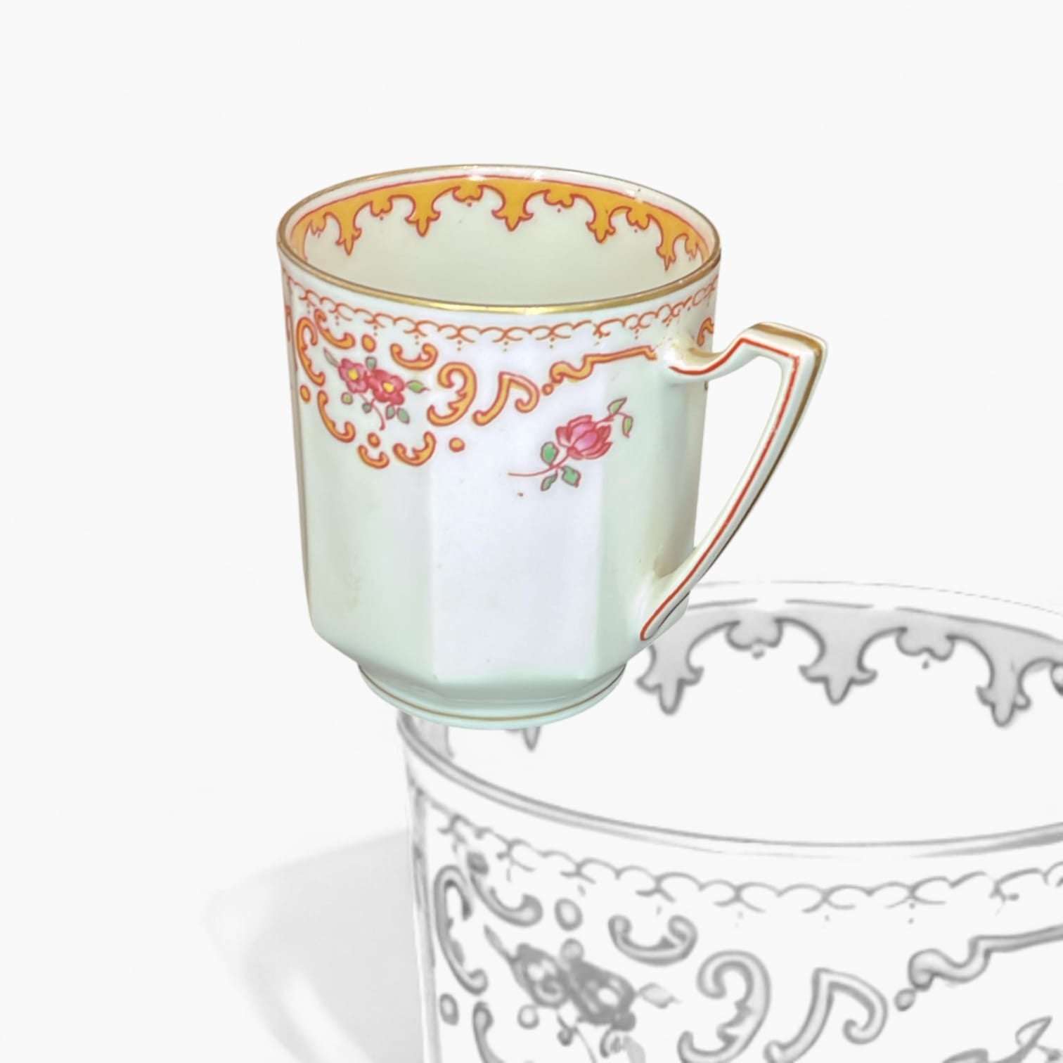 La taza de colección Limoges representa el refinamiento europeo de finales del siglo XIX y principios del XX. Este tipo de piezas eran habituales en salones burgueses y mesas distinguidas, donde el ritual del café se convertía en un acto social.