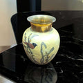 Vasija de metal esmaltado, arte floral exclusivo con animales.